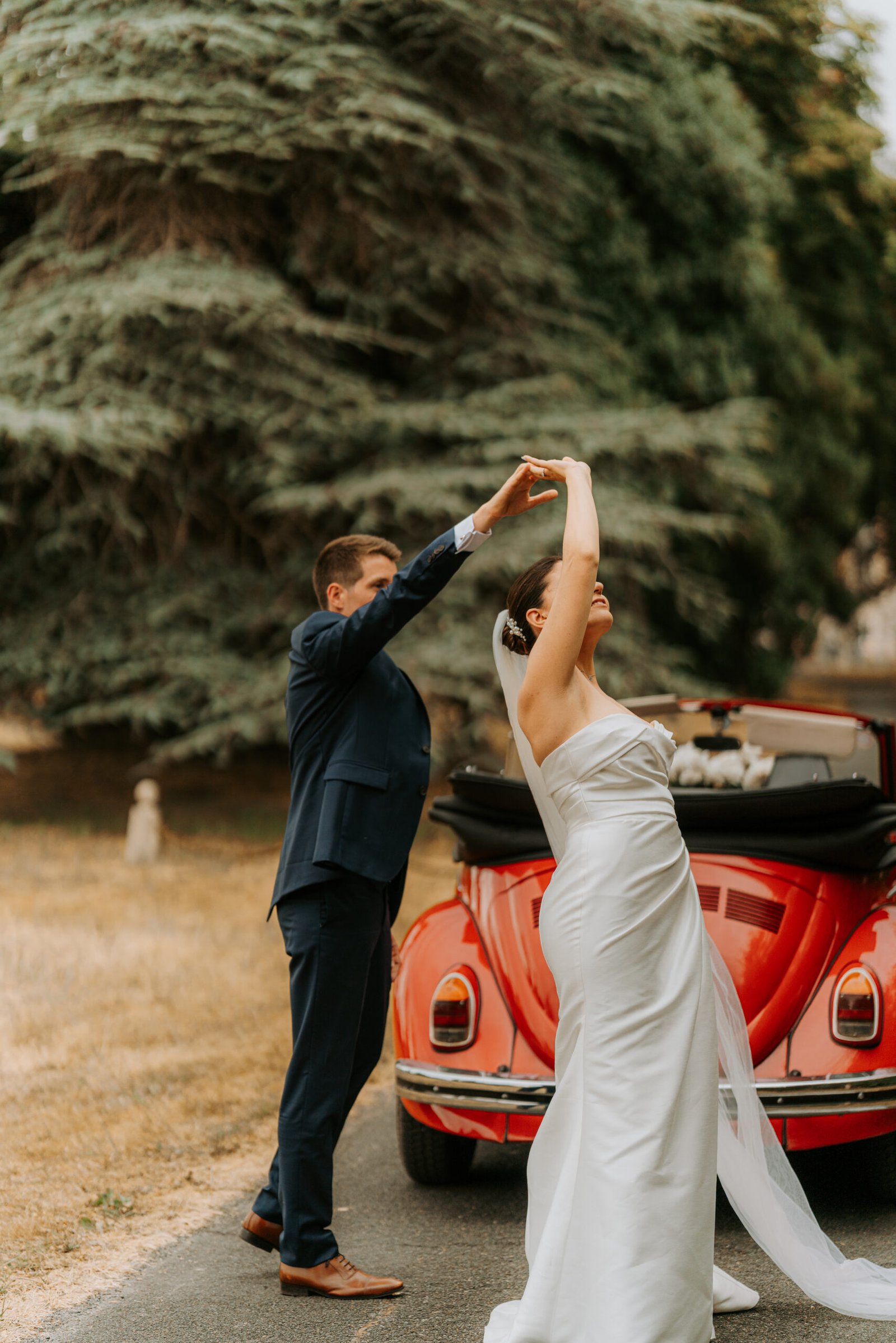 Plutôt qu’un seul temps figé, je vous propose plusieurs instants plus courts : pendant le vin d’honneur, à la lumière douce du coucher du soleil, ou encore après l’ouverture de bal, dans une ambiance plus festive et spontanée.